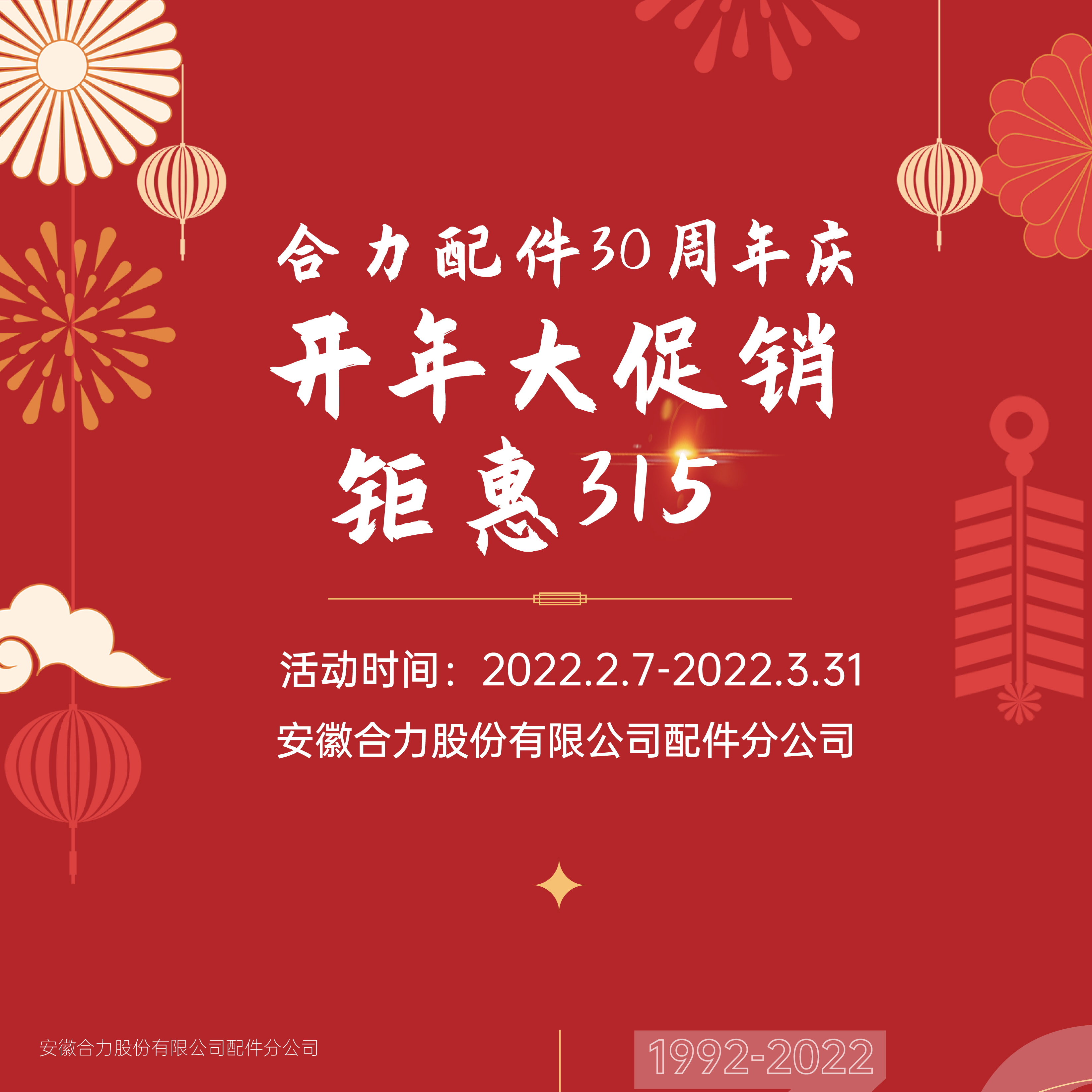 协力配件三十周年庆 | 开年大促销 钜惠315